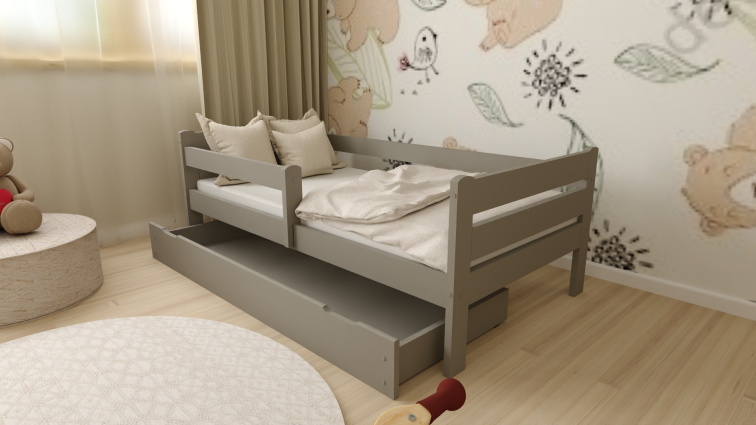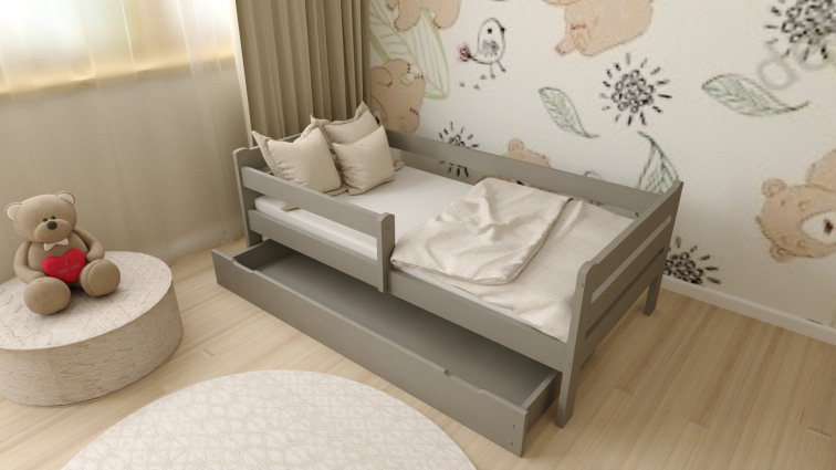 Dětská postel z masivu Eda 80x160 cm šedá + šuplík + pěnová matrace