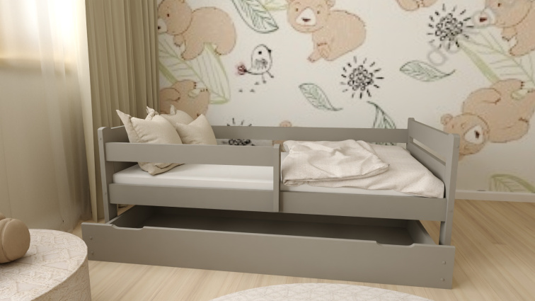 Dětská postel z masivu Eda 80x180 cm šedá + šuplík + pěnová matrace