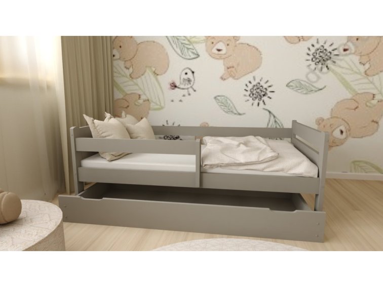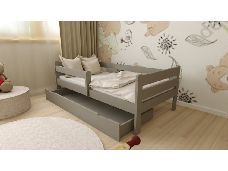 Dětská postel z masivu Eda 80x200 cm šedá + šuplík + pěnová matrace