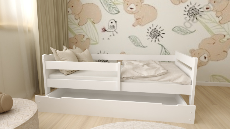 Dětská postel z masivu Eda 90x200 cm bílá + šuplík + pěnová matrace