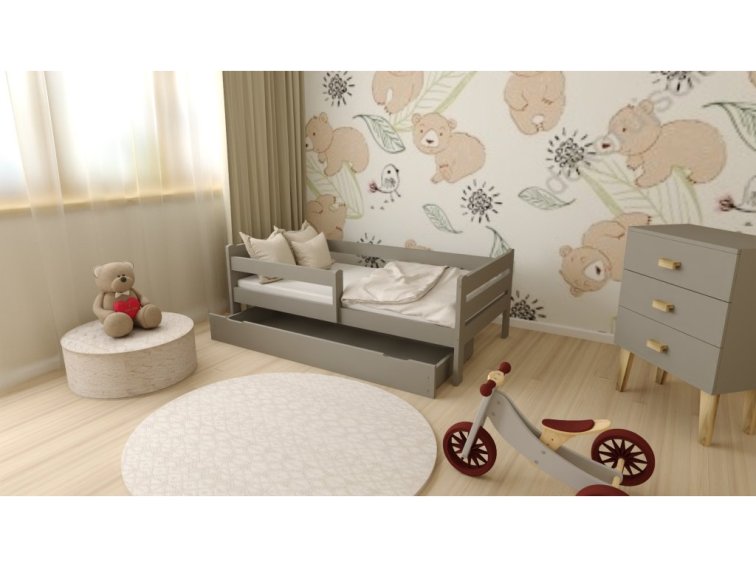 Dětská postel z masivu Eda 90x200 cm šedá + šuplík + pěnová matrace