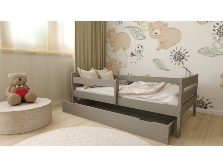 Dětská postel z masivu Eda 80x180 cm Šedá + šuplík