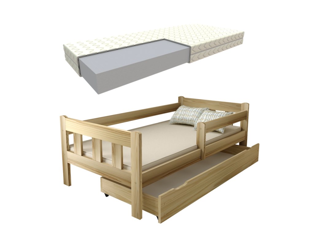 Dětská postel z masivu Martin 80x200 cm Přírodní + šuplík + pěnová matrace