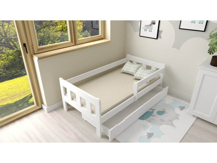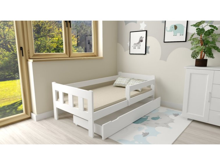 Dětská postel z masivu Martin 80x180 cm bílá + šuplík + pěnová matrace