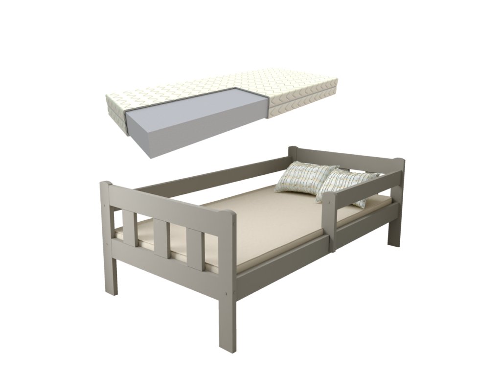 Dětská postel z masivu Martin 80x200 cm šedá + pěnová matrace