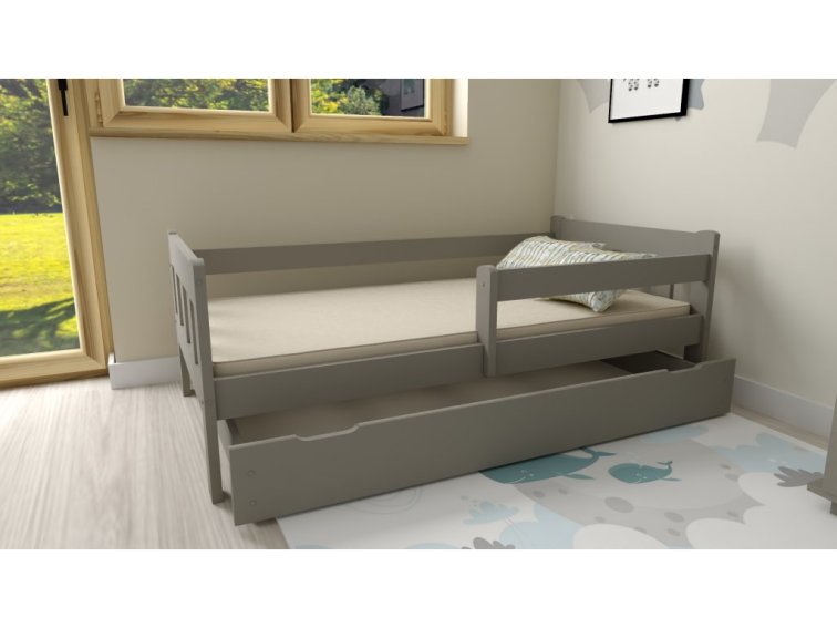 Dětská postel z masivu Martin 80x200 cm Šedá + šuplík + pěnová matrace