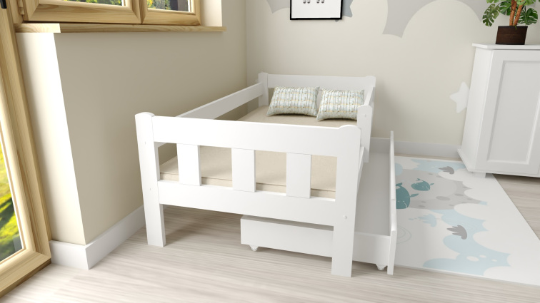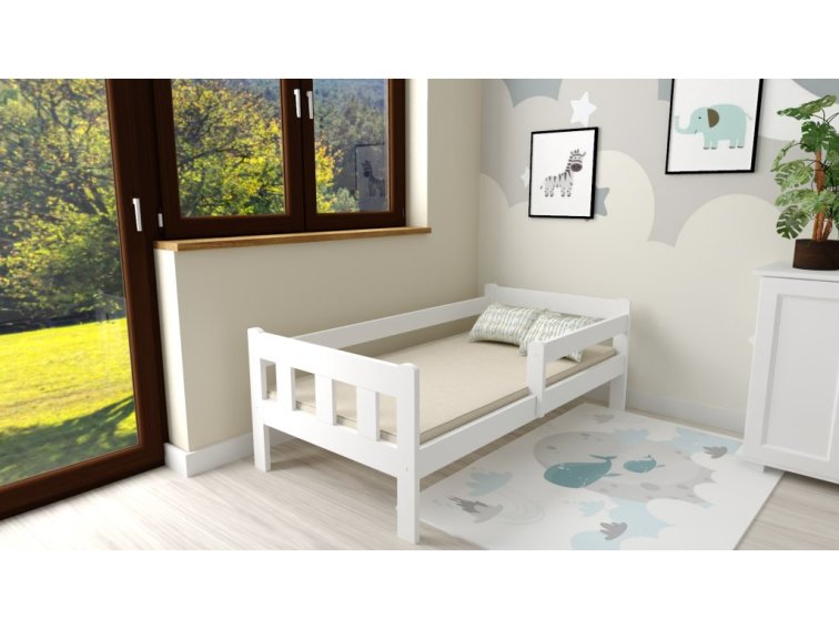 Dětská postel z masivu Martin 90x200 cm Bílá + pěnová matrace