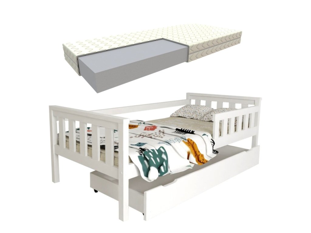 Dětská postel z masivu Mike 80x180 cm Bílá + šuplík + pěnová matrace