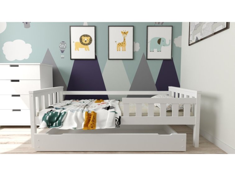 Dětská postel z masivu Mike 80x200 cm Bílá + šuplík + pěnová matrace