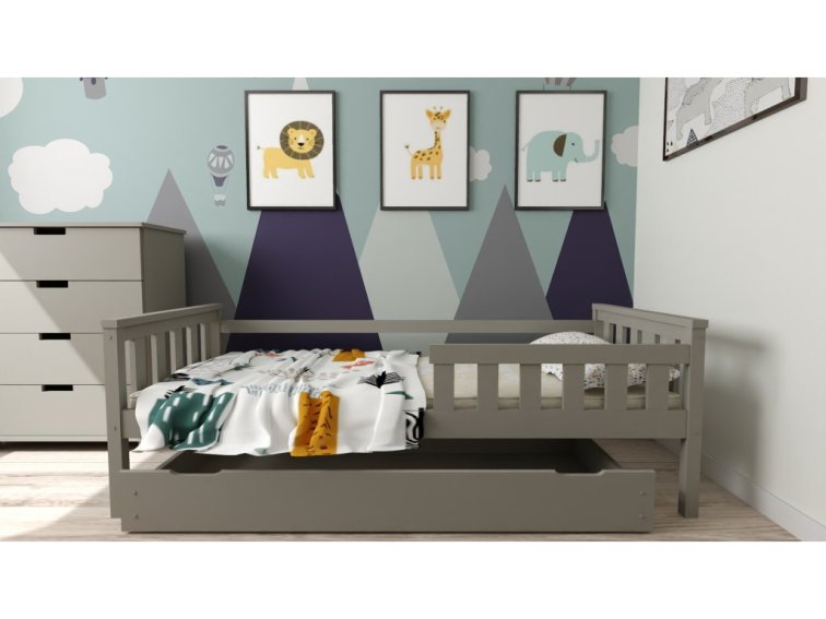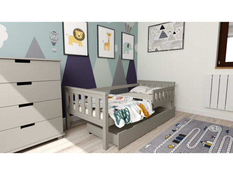 Dětská postel z masivu Mike 90x200 cm Šedá + šuplík + pěnová matrace