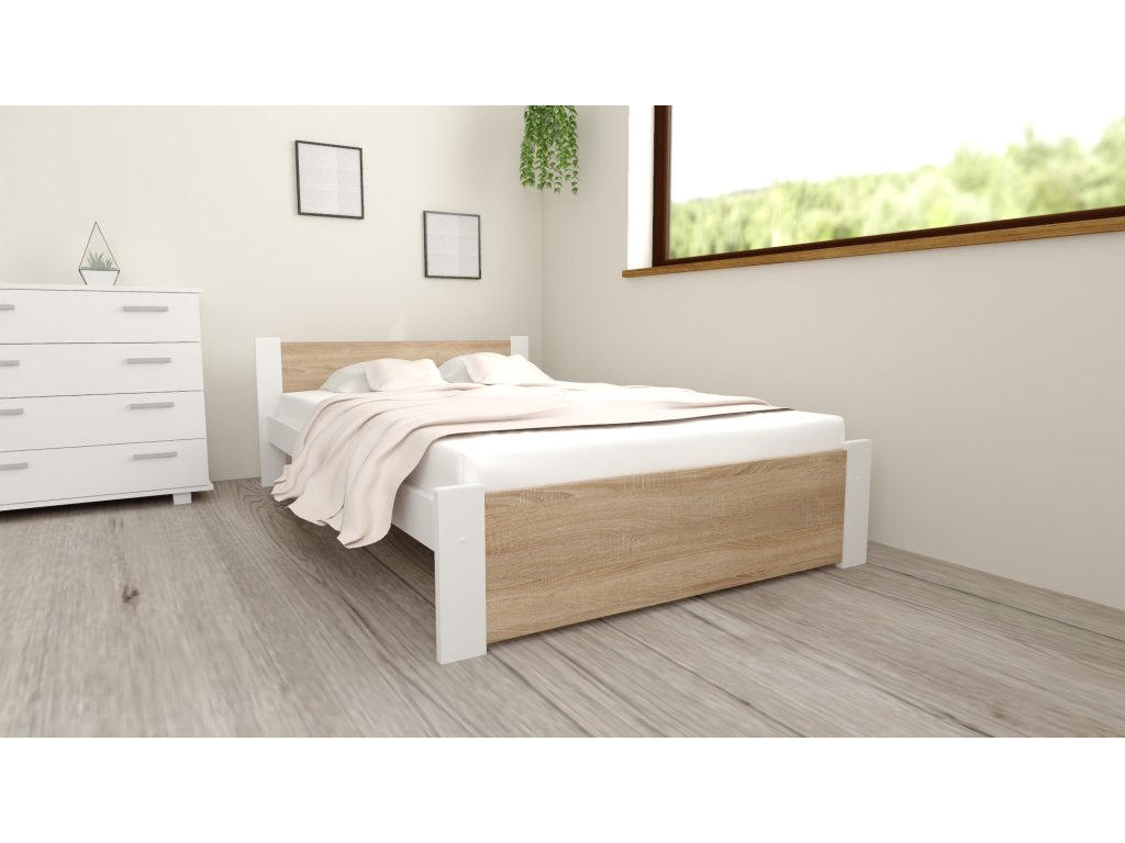 Postel z masivu Darek 120x200 cm Bílá + Dub Sonoma + pěnová matrace