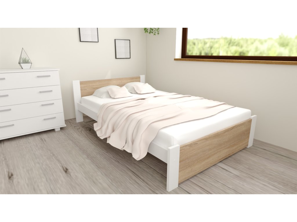 Postel z masivu Darek 160x200 cm Bílá + Dub Sonoma + pěnová matrace