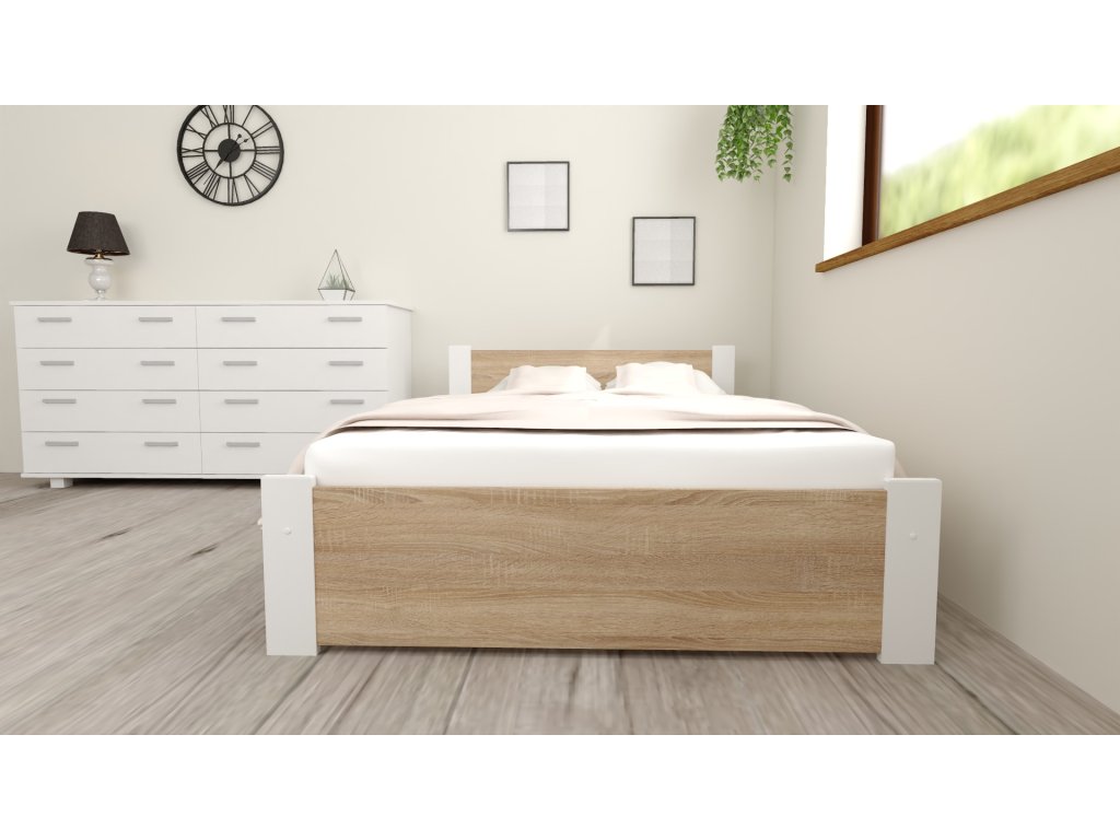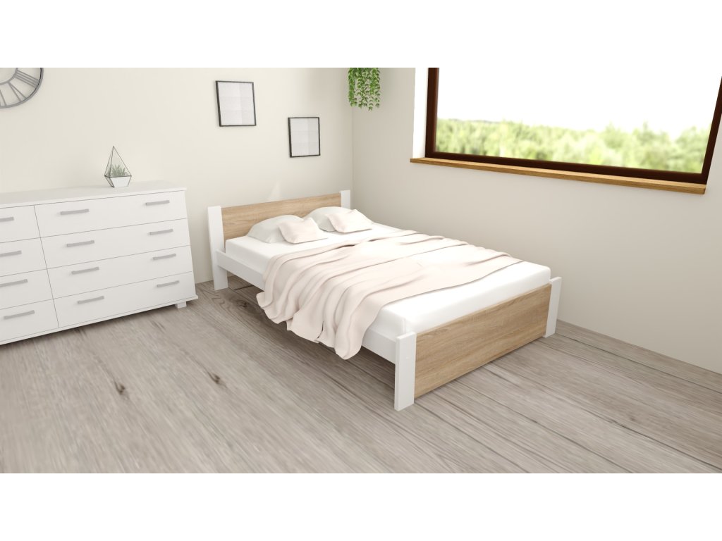 Postel z masivu Darek 180x200 cm Bílá + Dub Sonoma + pěnová matrace