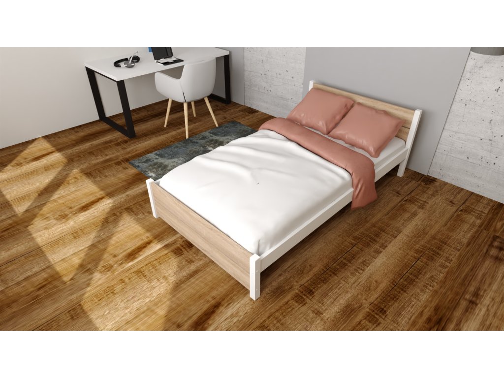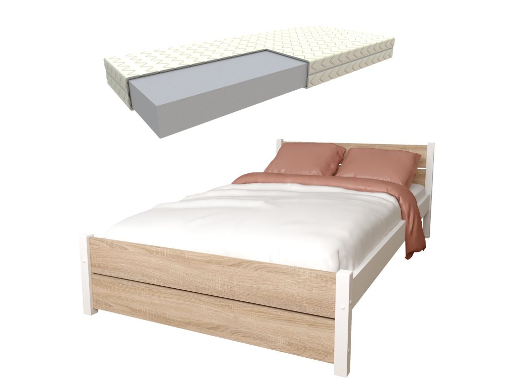 Postel z masivu Lapis 180x200 cm Bílá + Dub Sonoma + pěnová matrace