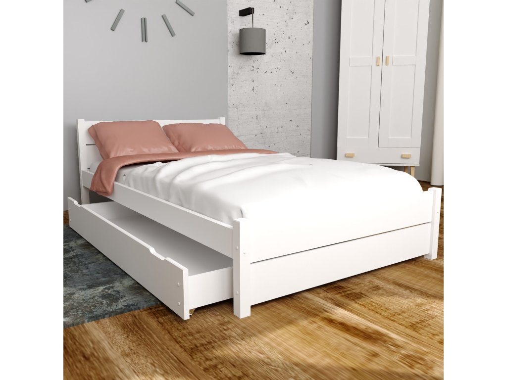 Postel z masivu Lapis 180x200 cm Bílá + šuplík