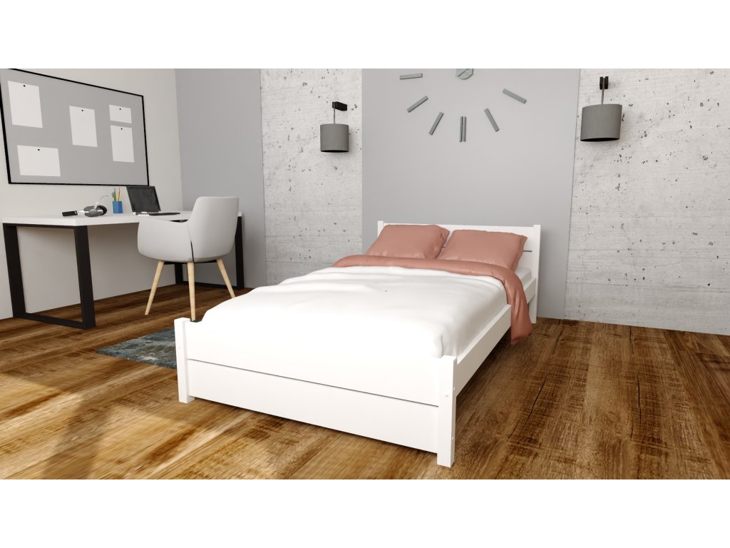 Postel z masivu Lapis 80x200 cm Bílá + pěnová matrace